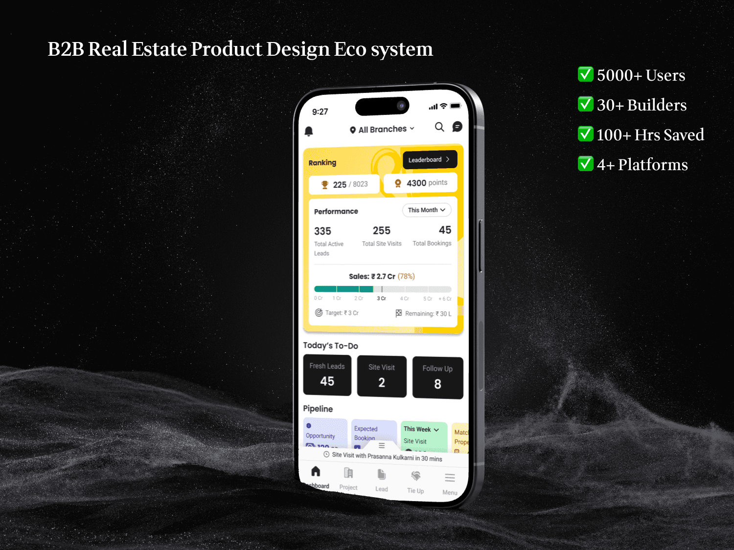 Redesigned B2B real estate platform serving 5000+ users, improving lead conversion by 35% through streamlined workflows