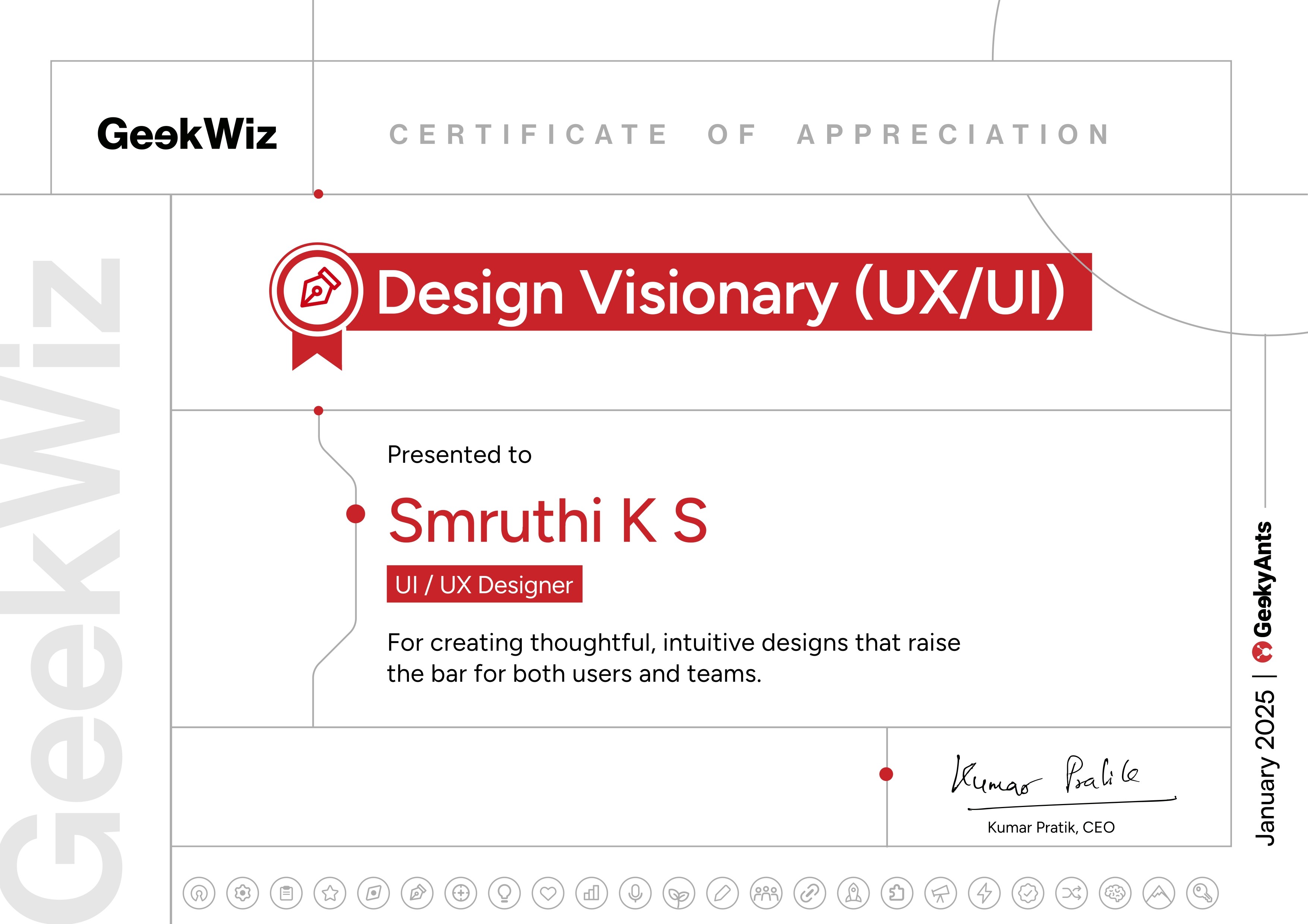 Smruthi does an excellent Job, She is adapting to feedback, introduces own ideas and can even work quickly on newly introduced Jobs that were out of scope